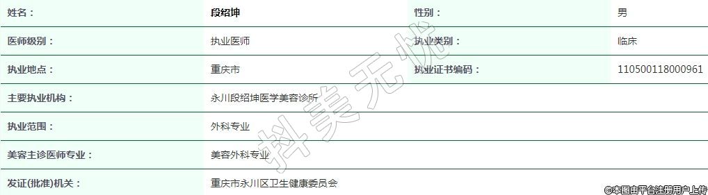 重慶尚美段紹坤醫(yī)學(xué)美容執(zhí)業(yè)醫(yī)師