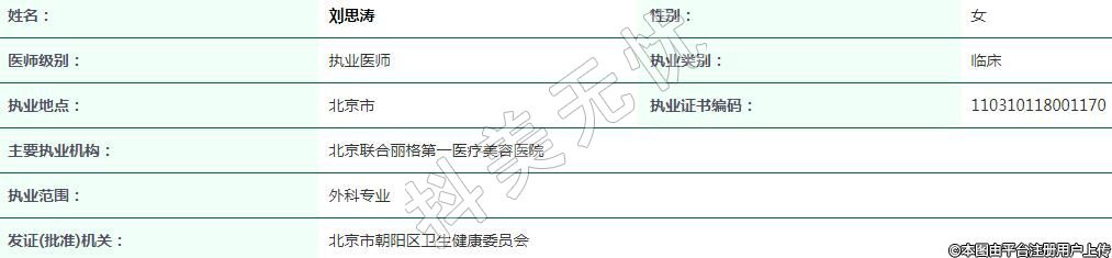 北京聯合麗格第一醫(yī)療美容執(zhí)業(yè)醫(yī)生