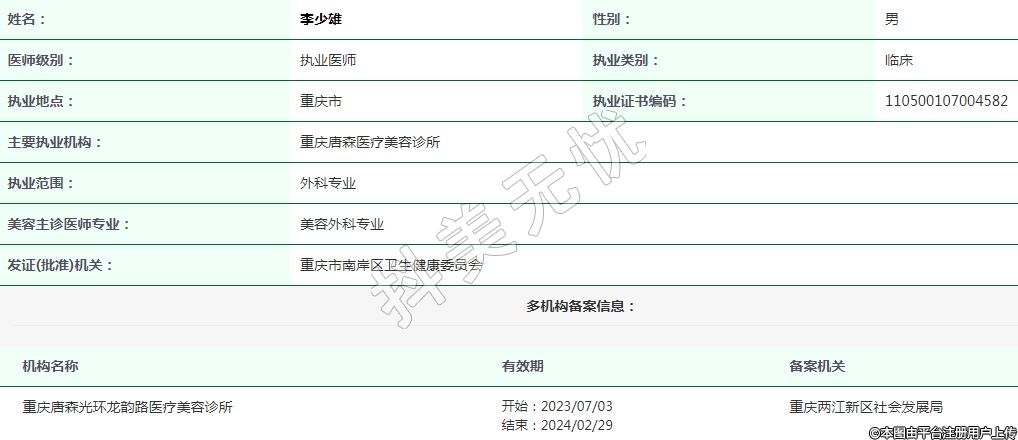 重慶唐森醫(yī)療美容執(zhí)業(yè)醫(yī)師
