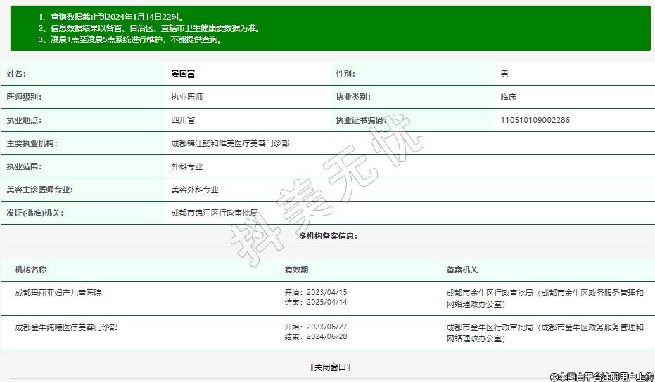 主要執(zhí)業(yè)機構:成都錦江懿和唯美醫(yī)療美容門診部