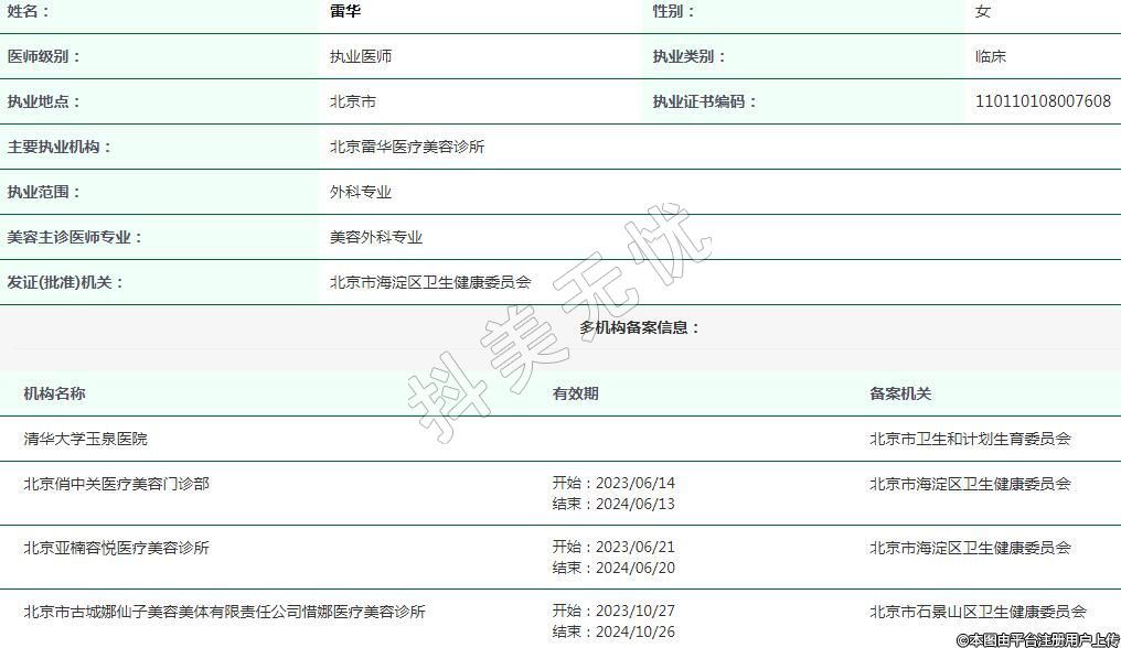主要執(zhí)業(yè)機構(gòu):北京雷華醫(yī)療美容診所