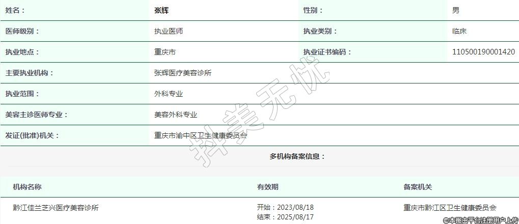 重慶張輝醫(yī)療美容執(zhí)業(yè)醫(yī)師
