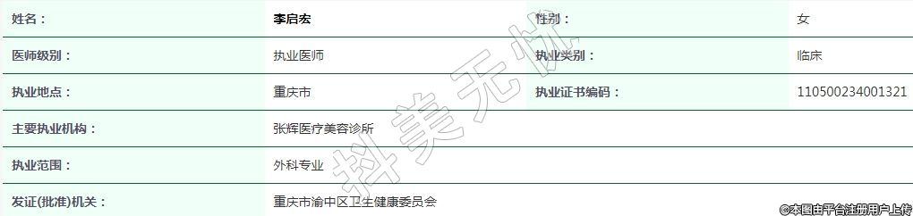 重慶張輝醫(yī)療美容執(zhí)業(yè)醫(yī)師