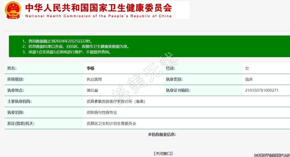 主要執(zhí)業(yè)機(jī)構(gòu):武昌素氧悅?cè)葆t(yī)療美容診所(備案)