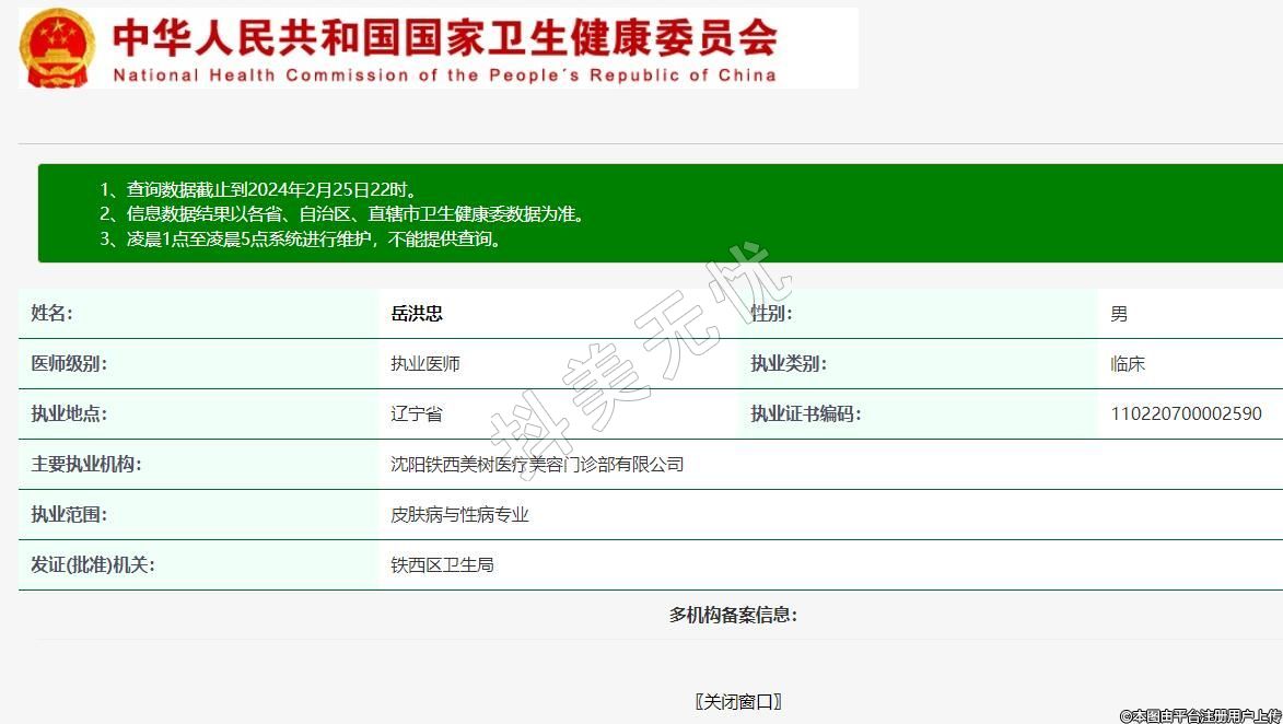 主要執(zhí)業(yè)機構(gòu):沈陽鐵西美樹醫(yī)療美容門診部有限公司
