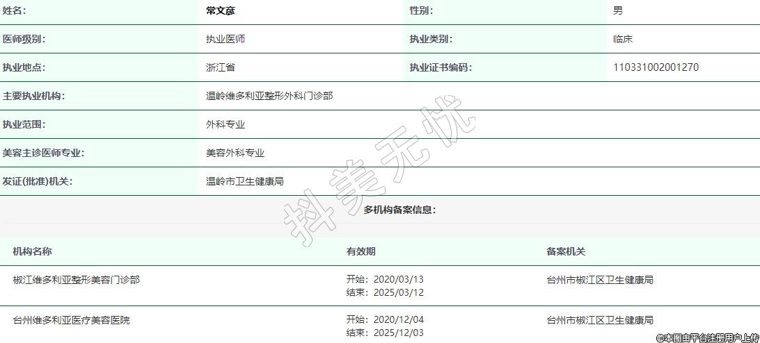 主要執(zhí)業(yè)機構:溫嶺維多利亞整形外科門診部