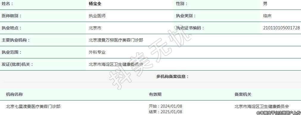 北京渡曼醫(yī)療美容執(zhí)業(yè)醫(yī)生