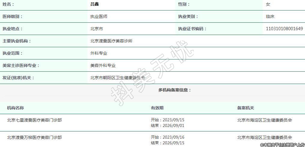 北京渡曼醫(yī)療美容執(zhí)業(yè)醫(yī)生