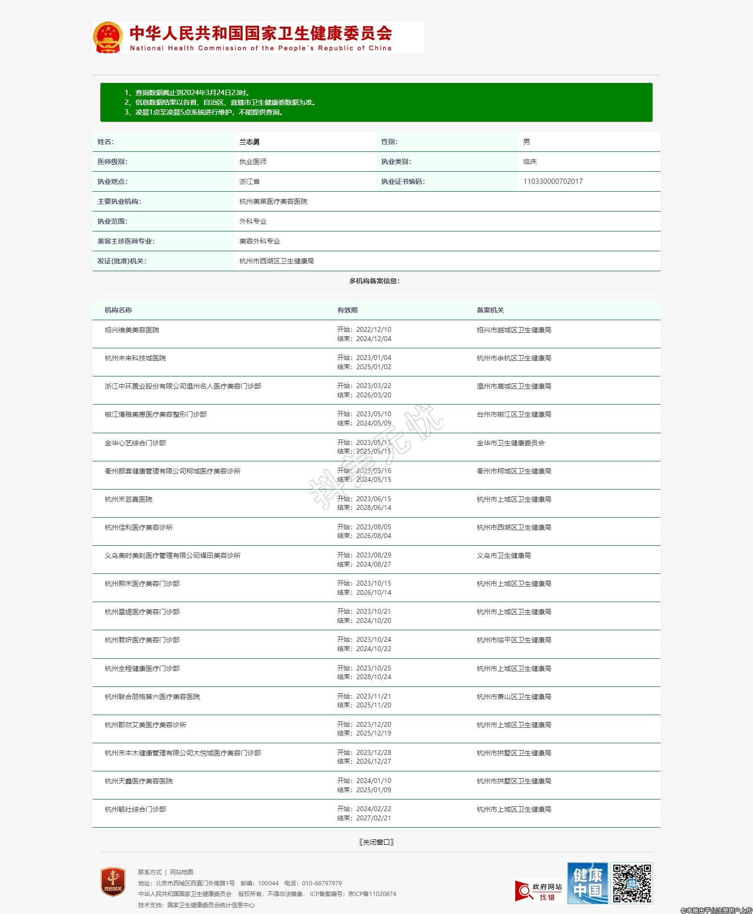 主要執(zhí)業(yè)機(jī)構(gòu):杭州美萊醫(yī)療美容醫(yī)院