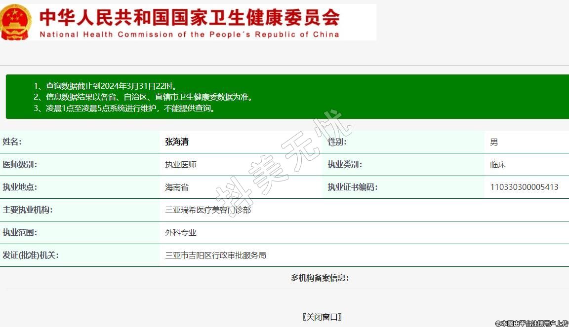 主要執(zhí)業(yè)機構:三亞瑞希醫(yī)療美容門診部