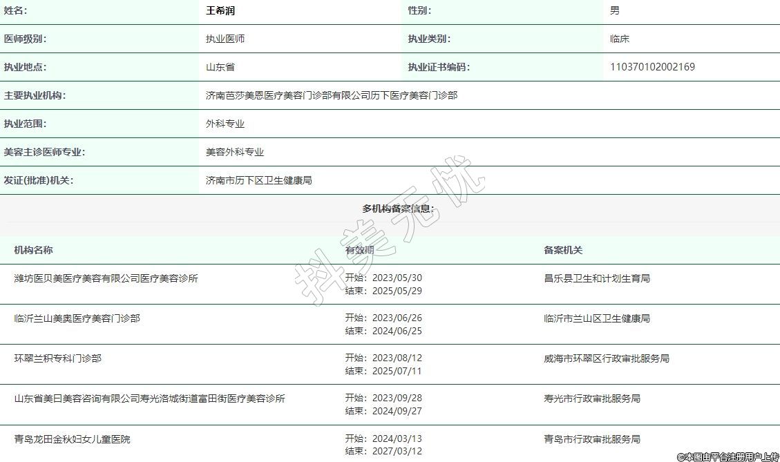 主要執(zhí)業(yè)機(jī)構(gòu):濟(jì)南芭莎美恩醫(yī)療美容門(mén)診部有限公司歷下醫(yī)療美容門(mén)診部