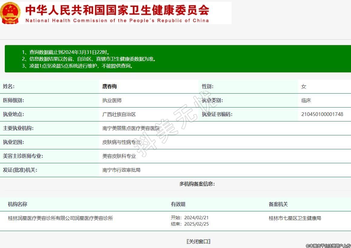 機構名稱:桂林潤星醫(yī)療美容診所有限公司潤星醫(yī)療美容診所