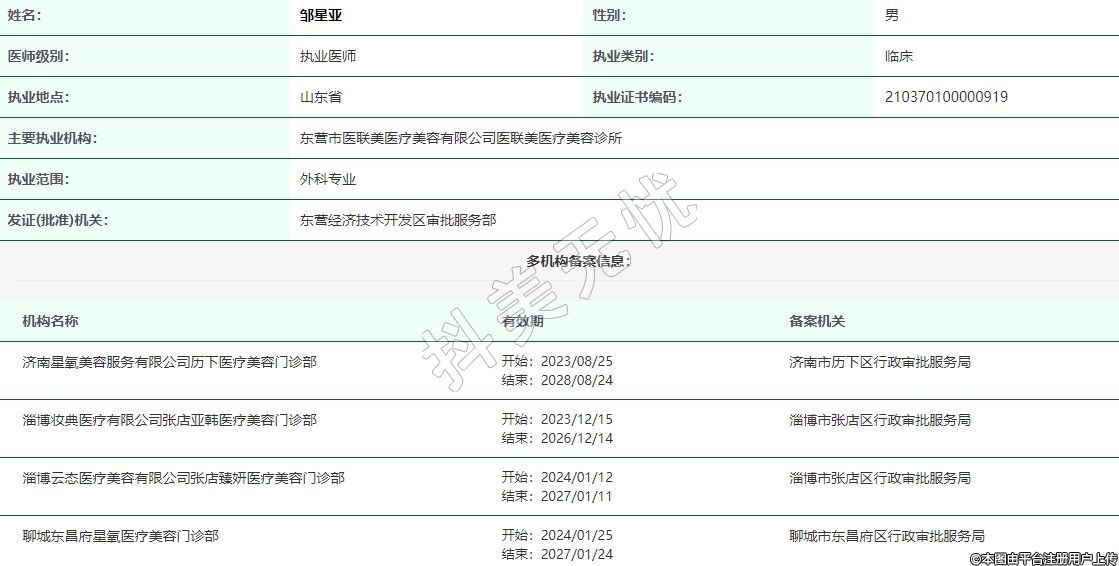 主要執(zhí)業(yè)機(jī)構(gòu):東營市醫(yī)聯(lián)美醫(yī)療美容有限公司醫(yī)聯(lián)美醫(yī)療美容診所