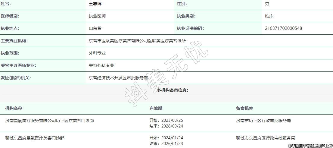 主要執(zhí)業(yè)機(jī)構(gòu):東營(yíng)市醫(yī)聯(lián)美醫(yī)療美容有限公司醫(yī)聯(lián)美醫(yī)療美容診所