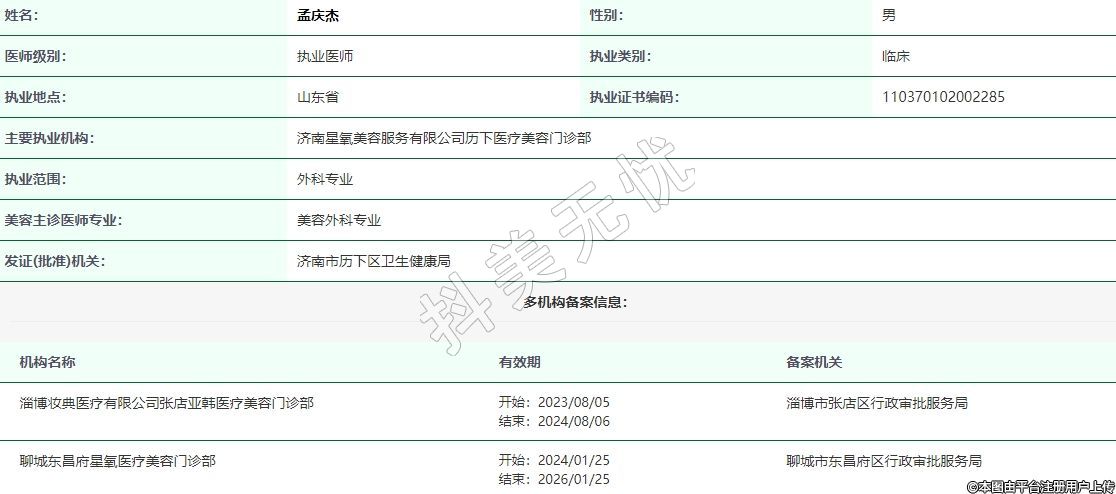 主要執(zhí)業(yè)機構(gòu):濟南星氧美容服務有限公司歷下醫(yī)療美容門診部