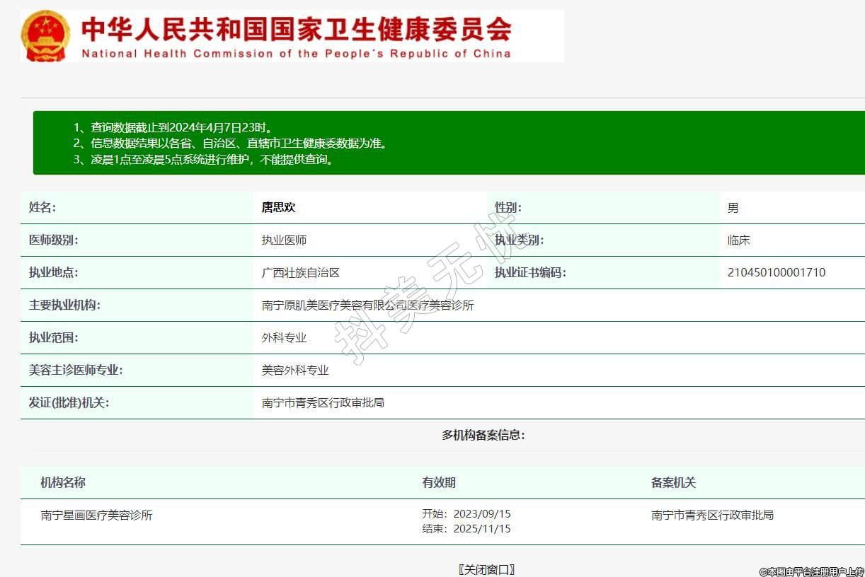 主要執(zhí)業(yè)機(jī)構(gòu):南寧原肌美醫(yī)療美容有限公司醫(yī)療美容診所