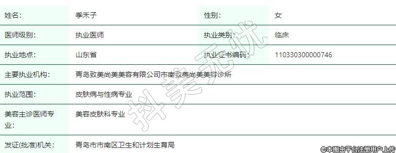 主要執(zhí)業(yè)機(jī)構(gòu):青島致美尚美美容有限公司市南致美尚美美容診所
