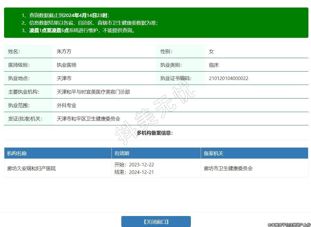 主要執(zhí)業(yè)機(jī)構(gòu):天津和平與時(shí)宜美醫(yī)療美容門(mén)診部