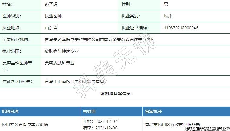 主要執(zhí)業(yè)機(jī)構(gòu):青島安芮嘉醫(yī)療美容有限公司市南萬(wàn)象安芮嘉醫(yī)療美容診所