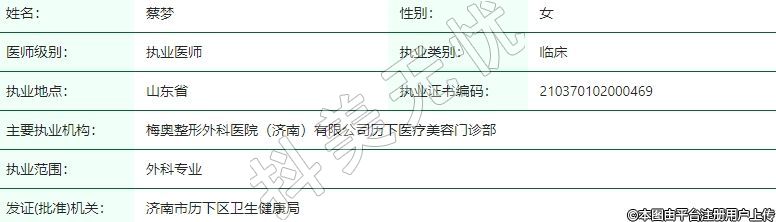 主要執(zhí)業(yè)機(jī)構(gòu):梅奧整形外科醫(yī)院(濟(jì)南)有限公司歷下醫(yī)療美容門(mén)診部