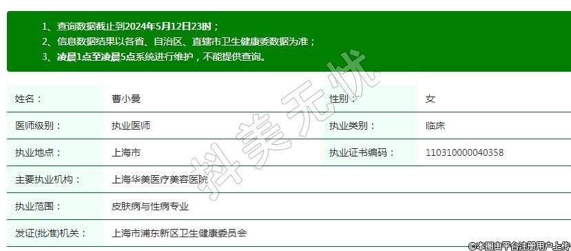 上海華美醫(yī)療美容執(zhí)業(yè)醫(yī)師