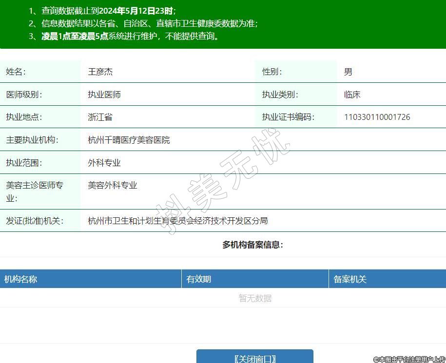 主要執(zhí)業(yè)機(jī)構(gòu):杭州千晴醫(yī)療美容醫(yī)院