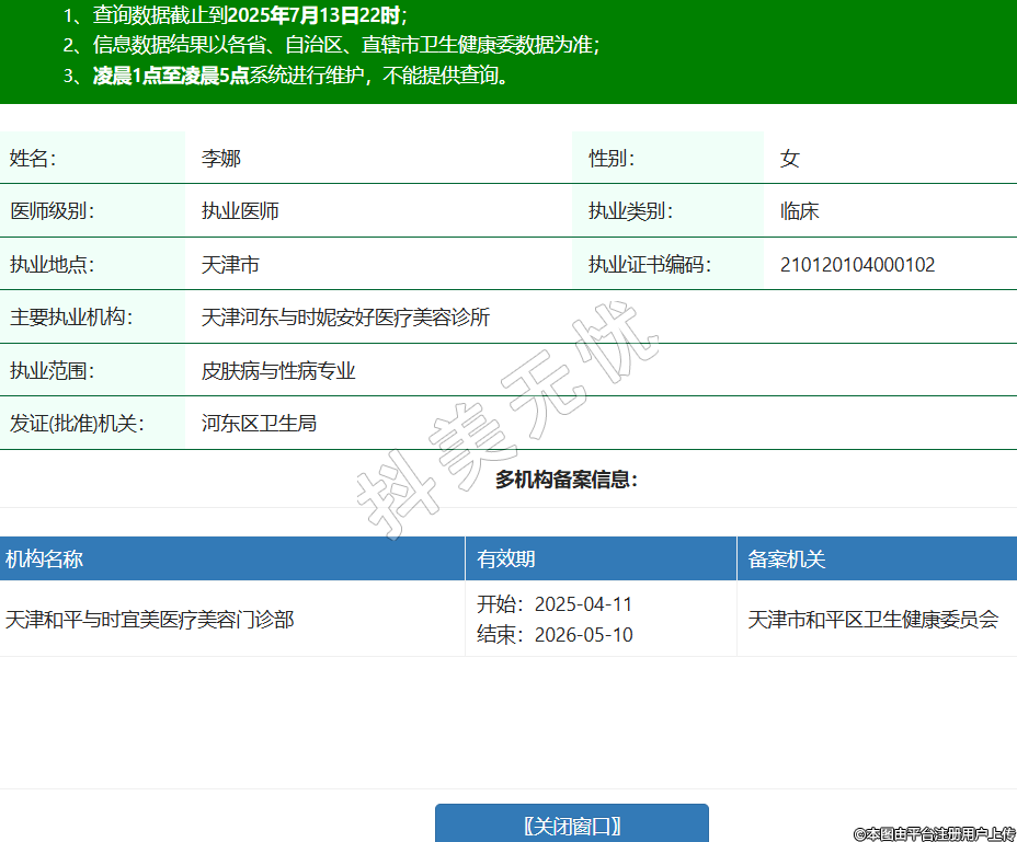 姓名:李娜性別:女醫(yī)師級(jí)別:執(zhí)業(yè)醫(yī)師執(zhí)業(yè)類別:臨床執(zhí)業(yè)地點(diǎn):天津市執(zhí)業(yè)證書編碼:210120104000102主要執(zhí)業(yè)機(jī)構(gòu):天津河?xùn)|與時(shí)妮安好醫(yī)療美容診所執(zhí)業(yè)范圍:皮膚病與性病專業(yè)發(fā)證(批準(zhǔn))機(jī)關(guān):河?xùn)|區(qū)衛(wèi)生局多機(jī)構(gòu)備案信息:機(jī)構(gòu)名稱 有效期 備案機(jī)關(guān) 天津和平與時(shí)宜美醫(yī)療美容門診部 開始:2025-04-11結(jié)束:2026-05-10天津市和平區(qū)衛(wèi)生健康委員會(huì) -