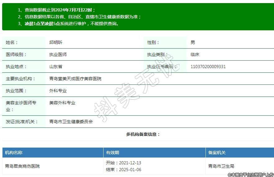 主要執(zhí)業(yè)機構(gòu):青島壹美天成醫(yī)療美容醫(yī)院