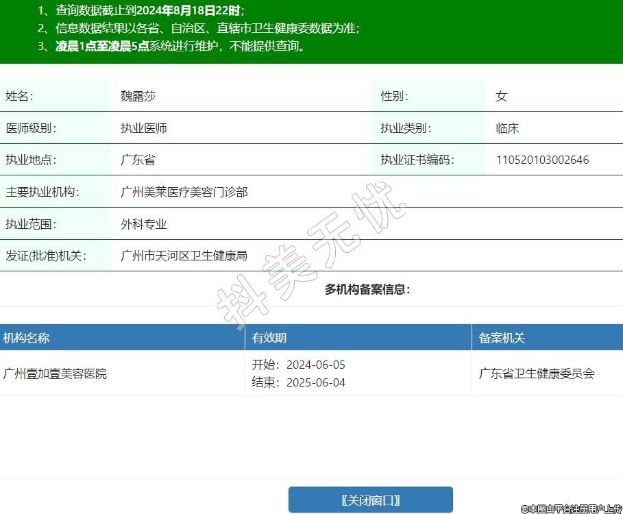 主要執(zhí)業(yè)機(jī)構(gòu):廣州美萊醫(yī)療美容門診部