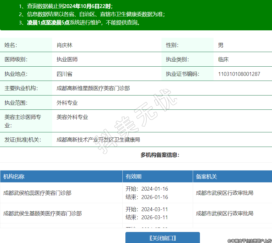 主要執(zhí)業(yè)機構(gòu):成都高新維星顏醫(yī)療美容門診部