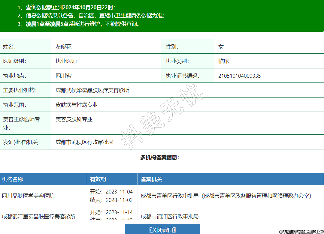 主要執(zhí)業(yè)機(jī)構(gòu):成都武侯華星晶膚醫(yī)療美容診所