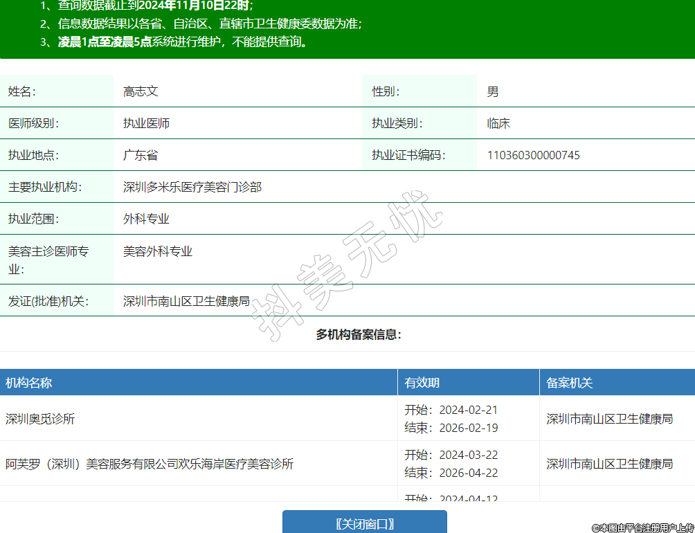 主要執(zhí)業(yè)機(jī)構(gòu):深圳多米樂(lè)醫(yī)療美容門(mén)診部