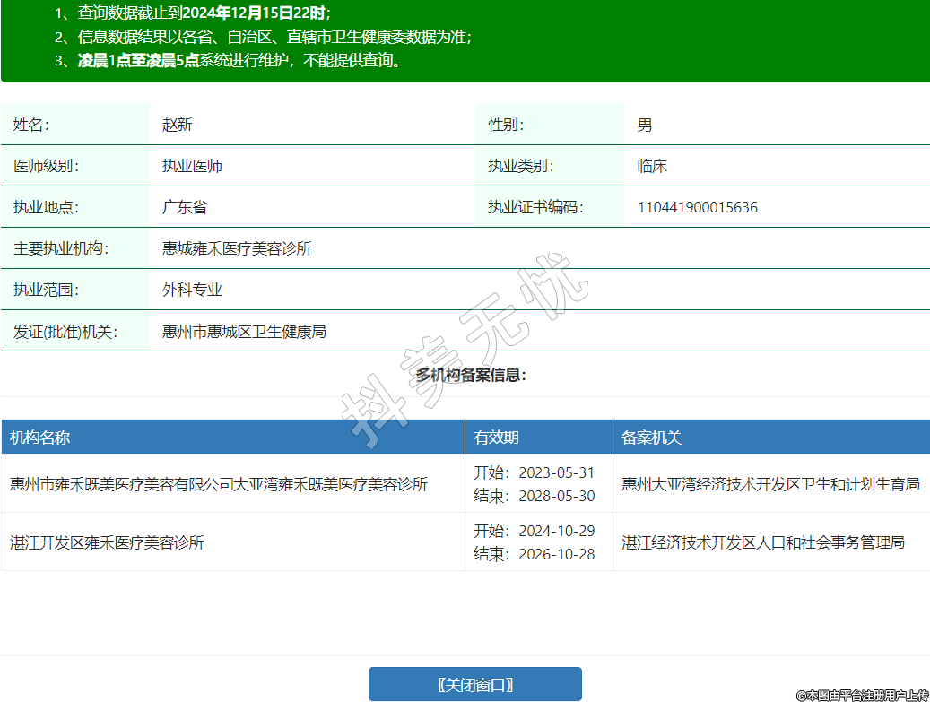 主要執(zhí)業(yè)機(jī)構(gòu):惠城雍禾醫(yī)療美容診所