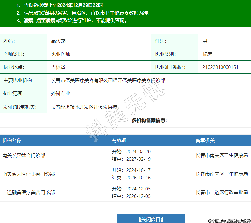 主要執(zhí)業(yè)機構:長春市盛美醫(yī)療美容有限公司經開盛美醫(yī)療美容門診部
