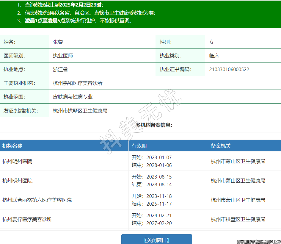 主要執(zhí)業(yè)機(jī)構(gòu):杭州嘉和醫(yī)療美容診所