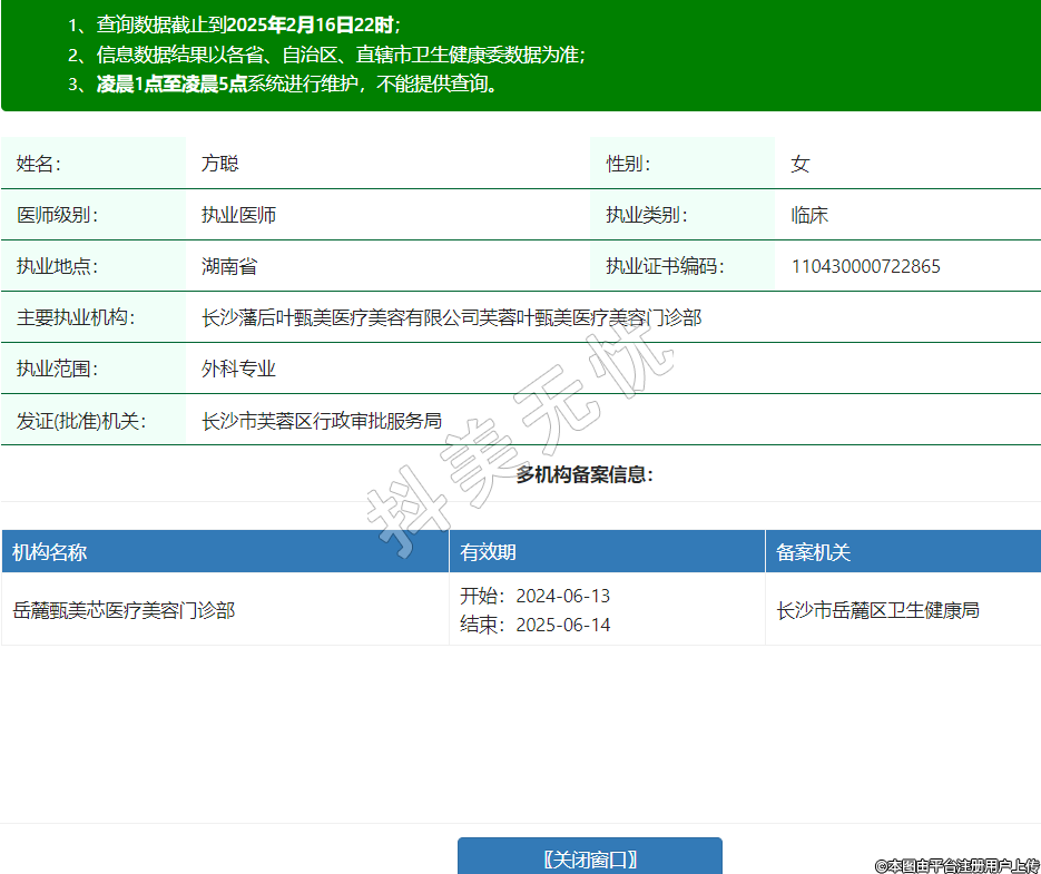 長(zhǎng)沙藩后葉甄美醫(yī)療美容有限公司芙蓉葉甄美醫(yī)療美容門診部