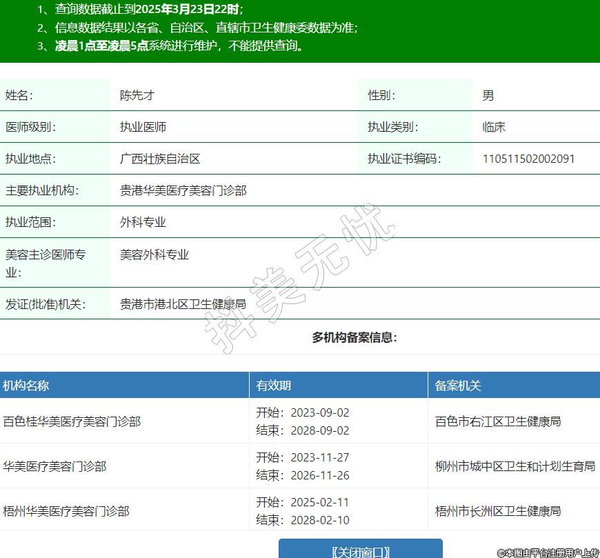 主要執(zhí)業(yè)機(jī)構(gòu):貴港華美醫(yī)療美容門診部
