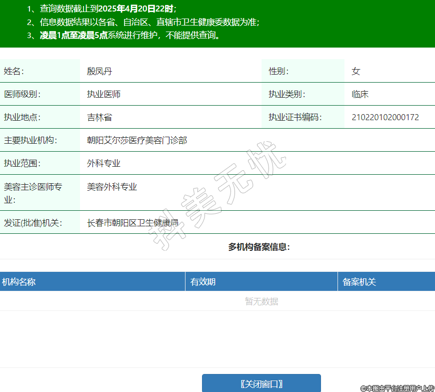 姓名:殷鳳丹性別:女醫(yī)師級(jí)別:執(zhí)業(yè)醫(yī)師執(zhí)業(yè)類(lèi)別:臨床執(zhí)業(yè)地點(diǎn):吉林省執(zhí)業(yè)證書(shū)編碼:210220102000172主要執(zhí)業(yè)機(jī)構(gòu):朝陽(yáng)艾爾莎醫(yī)療美容門(mén)診部執(zhí)業(yè)范圍:外科專(zhuān)業(yè)美容主診醫(yī)師專(zhuān)業(yè):美容外科專(zhuān)業(yè)發(fā)證(批準(zhǔn))機(jī)關(guān):長(zhǎng)春市朝陽(yáng)區(qū)衛(wèi)生健康局 -