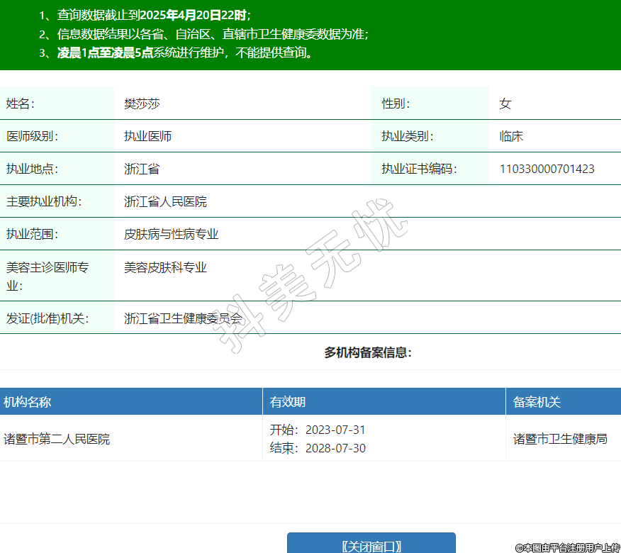 姓名:樊莎莎性別:女醫(yī)師級(jí)別:執(zhí)業(yè)醫(yī)師執(zhí)業(yè)類別:臨床執(zhí)業(yè)地點(diǎn):浙江省執(zhí)業(yè)證書編碼:110330000701423主要執(zhí)業(yè)機(jī)構(gòu):浙江省人民醫(yī)院執(zhí)業(yè)范圍:皮膚病與性病專業(yè)美容主診醫(yī)師專業(yè):美容皮膚科專業(yè)發(fā)證(批準(zhǔn))機(jī)關(guān):浙江省衛(wèi)生健康委員會(huì)多機(jī)構(gòu)備案信息:機(jī)構(gòu)名稱 有效期 備案機(jī)關(guān) 諸暨市第二人民醫(yī)院 開始:2023-07-31結(jié)束:2028-07-30諸暨市衛(wèi)生健康局 -