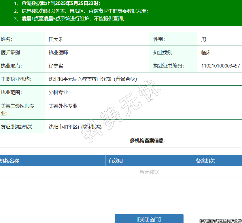 姓名:田大禾性別:男醫(yī)師級別:執(zhí)業(yè)醫(yī)師執(zhí)業(yè)類別:臨床執(zhí)業(yè)地點(diǎn):遼寧省執(zhí)業(yè)證書編碼:110210100003457主要執(zhí)業(yè)機(jī)構(gòu):沈陽和平元辰醫(yī)療美容門診部(普通合伙)執(zhí)業(yè)范圍:外科專業(yè)美容主診醫(yī)師專業(yè):美容外科專業(yè)發(fā)證(批準(zhǔn))機(jī)關(guān):沈陽市和平區(qū)行政審批局 -