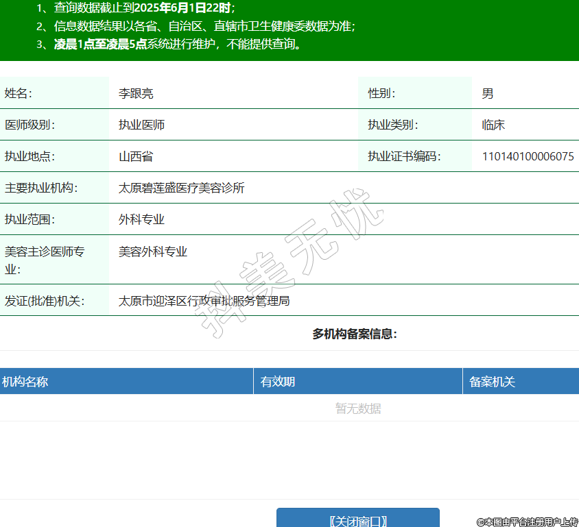 姓名:李跟亮性別:男醫(yī)師級(jí)別:執(zhí)業(yè)醫(yī)師執(zhí)業(yè)類別:臨床執(zhí)業(yè)地點(diǎn):山西省執(zhí)業(yè)證書編碼:110140100006075主要執(zhí)業(yè)機(jī)構(gòu):太原碧蓮盛醫(yī)療美容診所執(zhí)業(yè)范圍:外科專業(yè)美容主診醫(yī)師專業(yè):美容外科專業(yè)發(fā)證(批準(zhǔn))機(jī)關(guān):太原市迎澤區(qū)行政審批服務(wù)管理局 -
