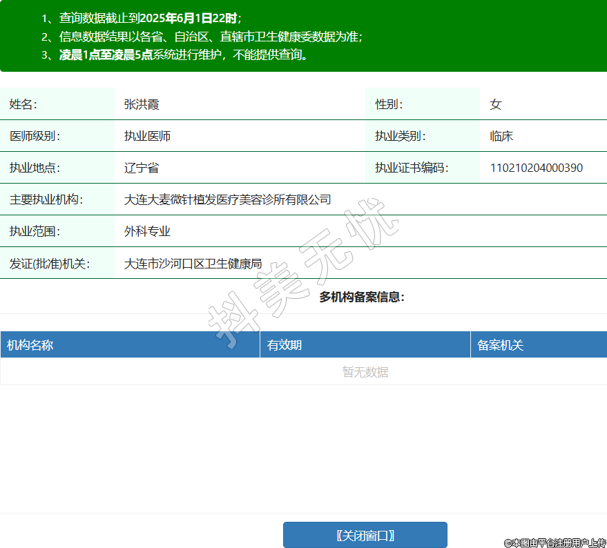 姓名:張洪霞性別:女醫(yī)師級別:執(zhí)業(yè)醫(yī)師執(zhí)業(yè)類別:臨床執(zhí)業(yè)地點:遼寧省執(zhí)業(yè)證書編碼:110210204000390主要執(zhí)業(yè)機構:大連大麥微針植發(fā)醫(yī)療美容診所有限公司執(zhí)業(yè)范圍:外科專業(yè)發(fā)證(批準)機關:大連市沙河口區(qū)衛(wèi)生健康局 -