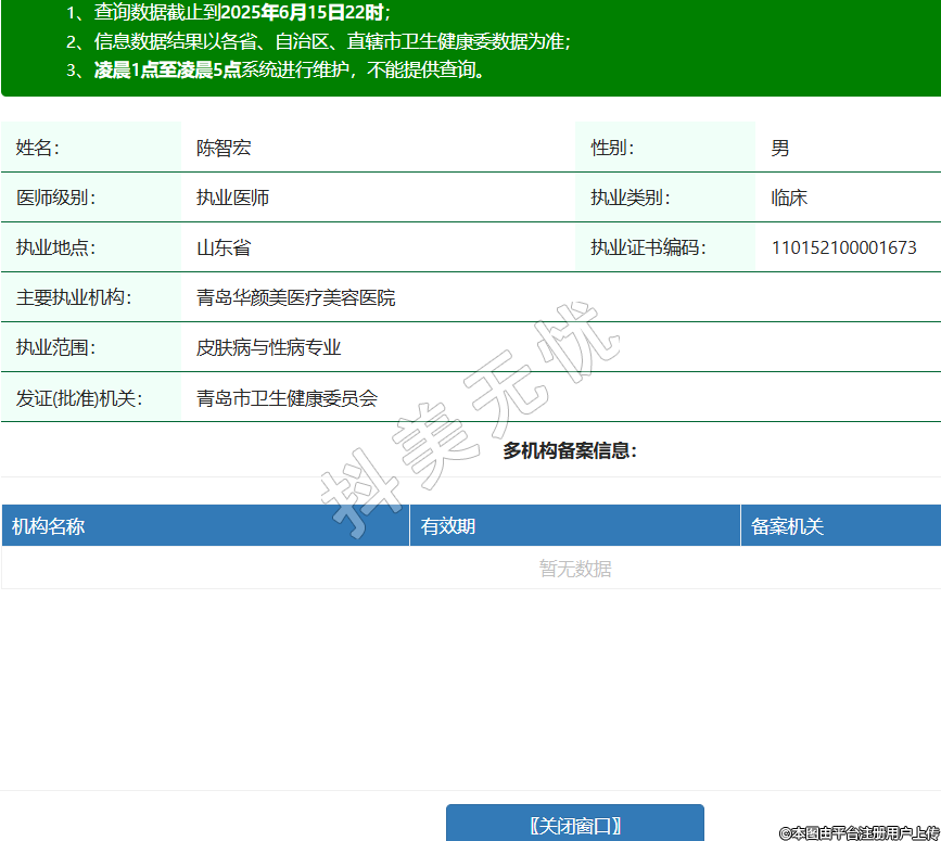 姓名:陳智宏性別:男醫(yī)師級別:執(zhí)業(yè)醫(yī)師執(zhí)業(yè)類別:臨床執(zhí)業(yè)地點(diǎn):山東省執(zhí)業(yè)證書編碼:110152100001673主要執(zhí)業(yè)機(jī)構(gòu):青島華顏美醫(yī)療美容醫(yī)院執(zhí)業(yè)范圍:皮膚病與性病專業(yè)發(fā)證(批準(zhǔn))機(jī)關(guān):青島市衛(wèi)生健康委員會 -
