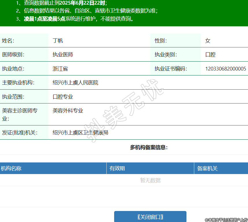 姓名:丁帆性別:女醫(yī)師級(jí)別:執(zhí)業(yè)醫(yī)師執(zhí)業(yè)類(lèi)別:口腔執(zhí)業(yè)地點(diǎn):浙江省執(zhí)業(yè)證書(shū)編碼:120330682000005主要執(zhí)業(yè)機(jī)構(gòu):紹興市上虞人民醫(yī)院執(zhí)業(yè)范圍:口腔專(zhuān)業(yè)美容主診醫(yī)師專(zhuān)業(yè):美容外科專(zhuān)業(yè)發(fā)證(批準(zhǔn))機(jī)關(guān):紹興市上虞區(qū)衛(wèi)生健康局 -