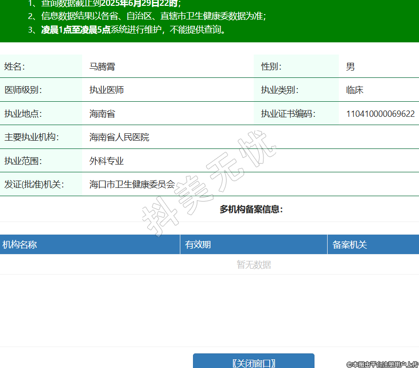姓名:馬騰霄性別:男醫(yī)師級(jí)別:執(zhí)業(yè)醫(yī)師執(zhí)業(yè)類別:臨床執(zhí)業(yè)地點(diǎn):海南省執(zhí)業(yè)證書編碼:110410000069622主要執(zhí)業(yè)機(jī)構(gòu):海南省人民醫(yī)院執(zhí)業(yè)范圍:外科專業(yè)發(fā)證(批準(zhǔn))機(jī)關(guān):??谑行l(wèi)生健康委員會(huì) -