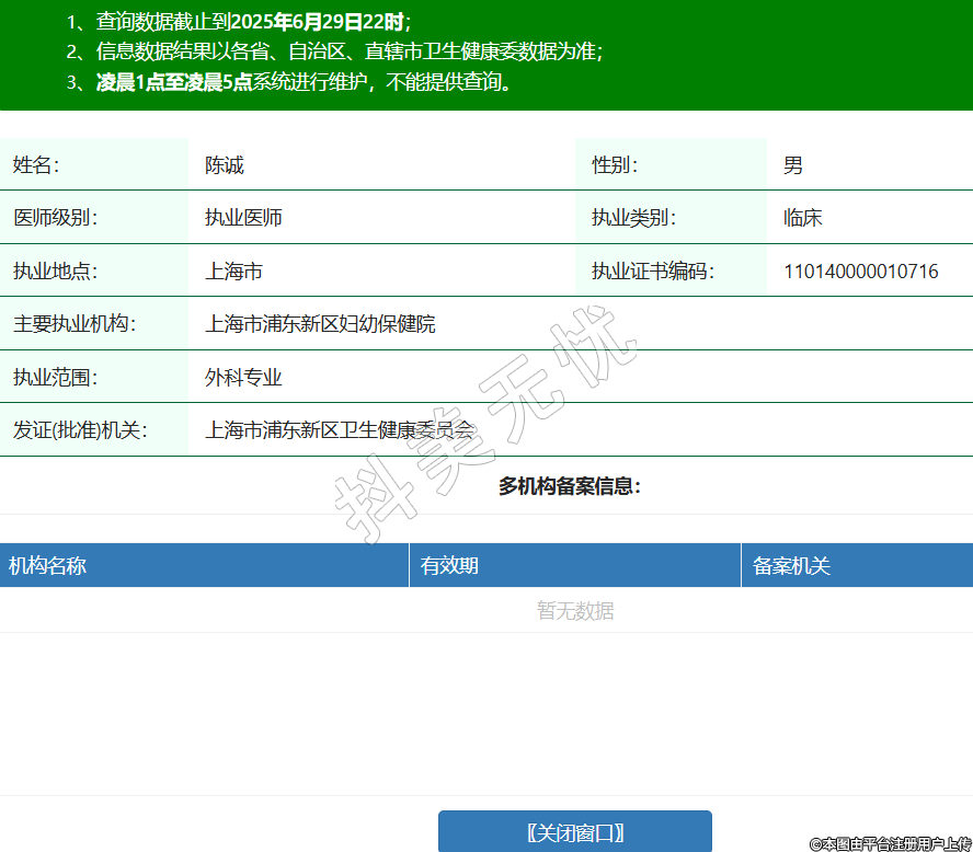 姓名:陳誠性別:男醫(yī)師級別:執(zhí)業(yè)醫(yī)師執(zhí)業(yè)類別:臨床執(zhí)業(yè)地點:上海市執(zhí)業(yè)證書編碼:110140000010716主要執(zhí)業(yè)機構(gòu):上海市浦東新區(qū)婦幼保健院執(zhí)業(yè)范圍:外科專業(yè)發(fā)證(批準)機關(guān):上海市浦東新區(qū)衛(wèi)生健康委員會 -