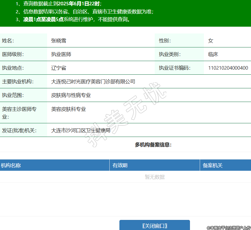 姓名:張曉雪性別:女醫(yī)師級別:執(zhí)業(yè)醫(yī)師執(zhí)業(yè)類別:臨床執(zhí)業(yè)地點(diǎn):遼寧省執(zhí)業(yè)證書編碼:110210204000400主要執(zhí)業(yè)機(jī)構(gòu):大連悅己時(shí)光醫(yī)療美容門診部有限公司執(zhí)業(yè)范圍:皮膚病與性病專業(yè)美容主診醫(yī)師專業(yè):美容皮膚科專業(yè)發(fā)證(批準(zhǔn))機(jī)關(guān):大連市沙河口區(qū)衛(wèi)生健康局 -