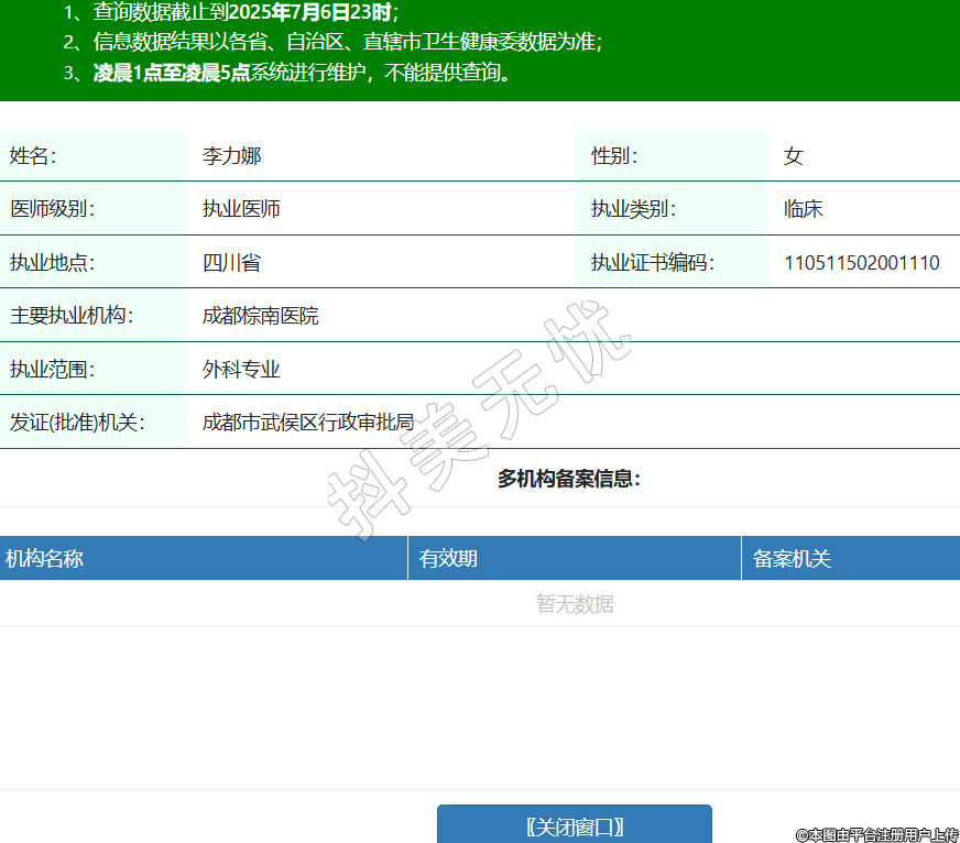 姓名:李力娜性別:女醫(yī)師級(jí)別:執(zhí)業(yè)醫(yī)師執(zhí)業(yè)類別:臨床執(zhí)業(yè)地點(diǎn):四川省執(zhí)業(yè)證書編碼:110511502001110主要執(zhí)業(yè)機(jī)構(gòu):成都棕南醫(yī)院執(zhí)業(yè)范圍:外科專業(yè)發(fā)證(批準(zhǔn))機(jī)關(guān):成都市武侯區(qū)行政審批局 -