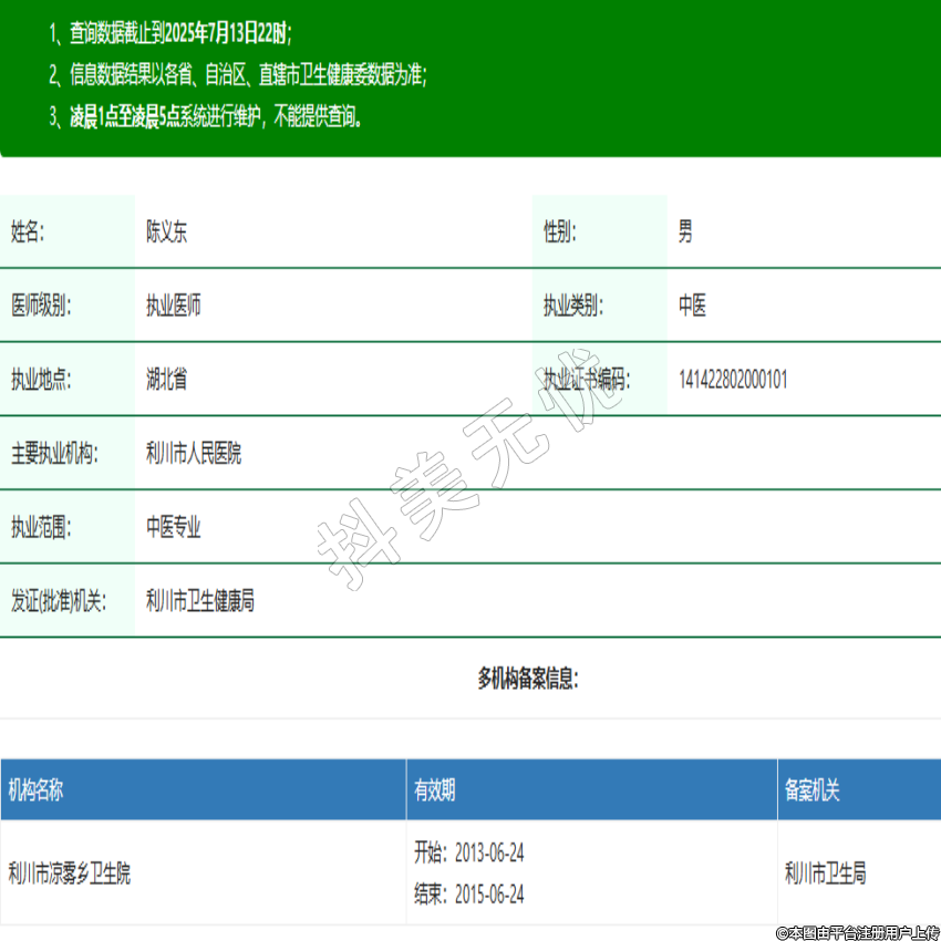 姓名:陳義東性別:男醫(yī)師級別:執(zhí)業(yè)醫(yī)師執(zhí)業(yè)類別:中醫(yī)執(zhí)業(yè)地點(diǎn):湖北省執(zhí)業(yè)證書編碼:141422802000101主要執(zhí)業(yè)機(jī)構(gòu):利川市人民醫(yī)院執(zhí)業(yè)范圍:中醫(yī)專業(yè)發(fā)證(批準(zhǔn))機(jī)關(guān):利川市衛(wèi)生健康局 -