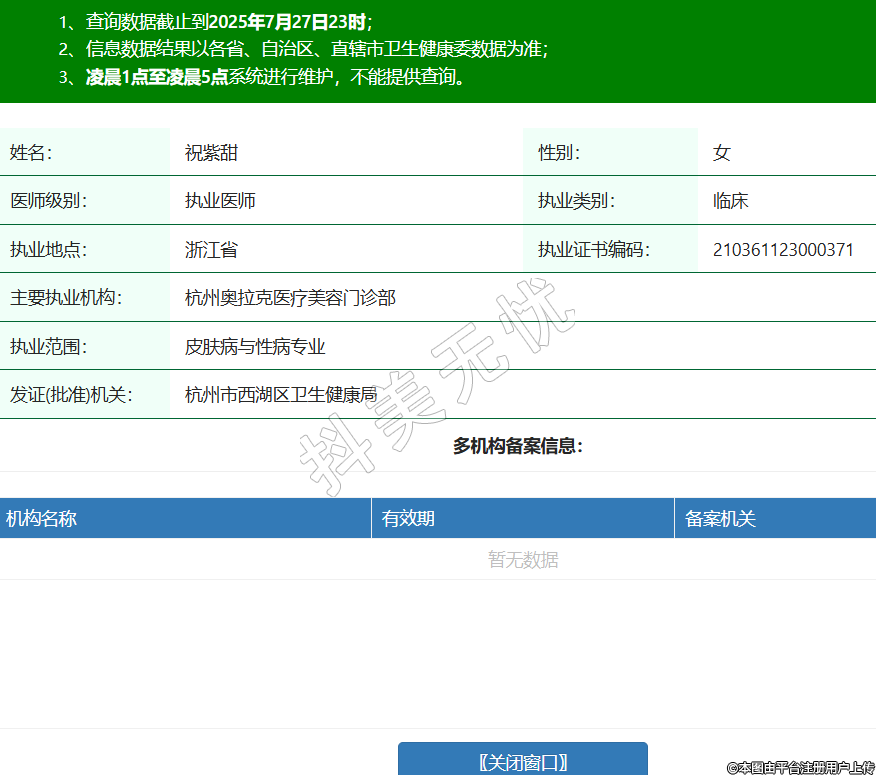 姓名:祝紫甜性別:女醫(yī)師級別:執(zhí)業(yè)醫(yī)師執(zhí)業(yè)類別:臨床執(zhí)業(yè)地點:浙江省執(zhí)業(yè)證書編碼:210361123000371主要執(zhí)業(yè)機(jī)構(gòu):杭州奧拉克醫(yī)療美容門診部執(zhí)業(yè)范圍:皮膚病與性病專業(yè)發(fā)證(批準(zhǔn))機(jī)關(guān):杭州市西湖區(qū)衛(wèi)生健康局 -
